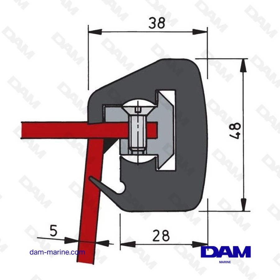 LISTON, DARK GREY, FOR STEEL BOATS, 42 X 38 MM, COMPLETE, 20 M ROLL.