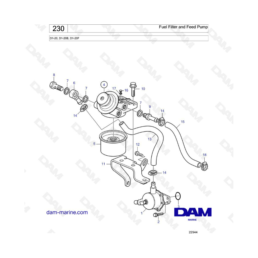 Volvo Penta D1-20 / D1-20B / D1-20F - Fuel filter & feed pump