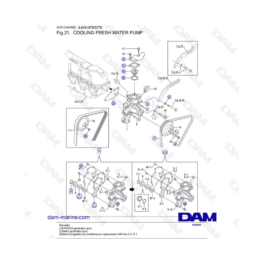 Yanmar 4JH3 - BOMBA DE AGUA DULCE DE REFRIGERACIÓN