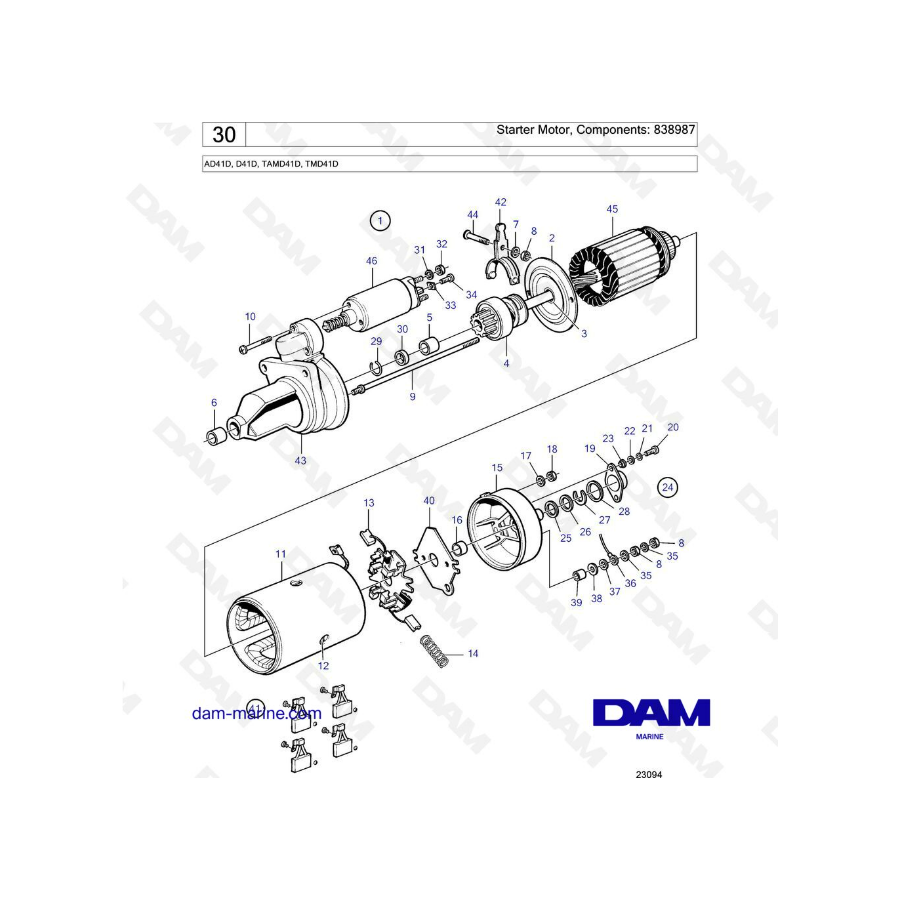 Componentes del motor de arranque para Volvo Penta AD41D / D41D / TAMD41D / TMD41D