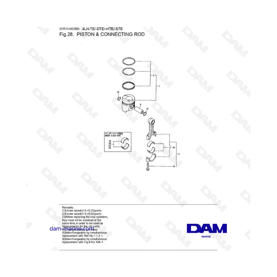 Diversas piezas mecánicas para motores marinos