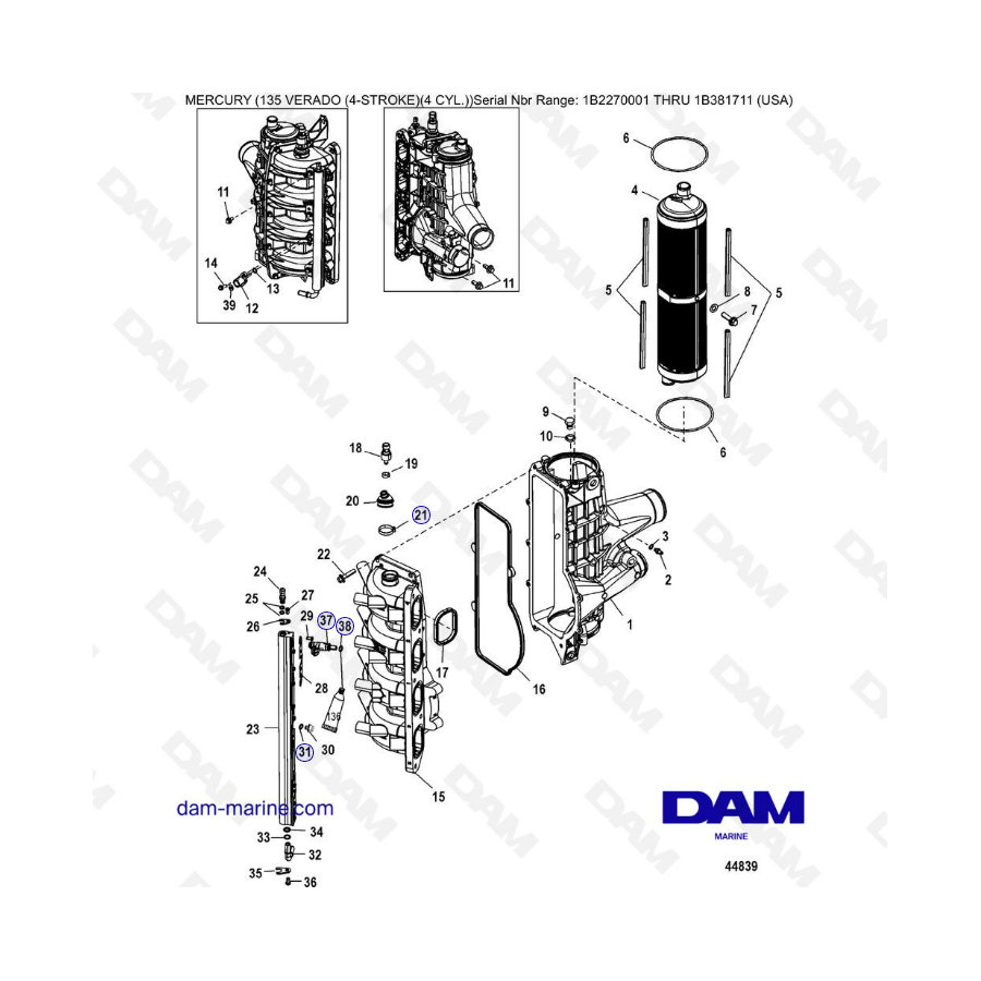 Mercury Verado 135 (N.S IB227001 a IB381711) - Enfriador de carga / Colector de admisión
