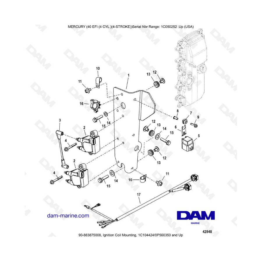Mercury 40 EFI - Montaje de la bobina de encendido (nuevo)