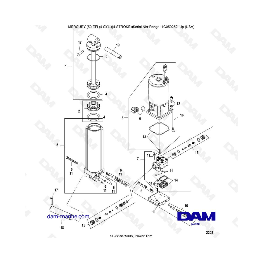 Moteur 2 fils pour trim de horsbord Mercury de 40 à 125HP disposant d'un seul vérin de relevage.
