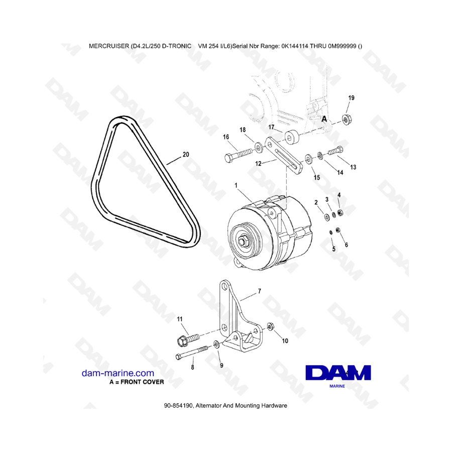 Mercruiser D4.2L 250 D-TRONIC - Alternador y herrajes de montaje
