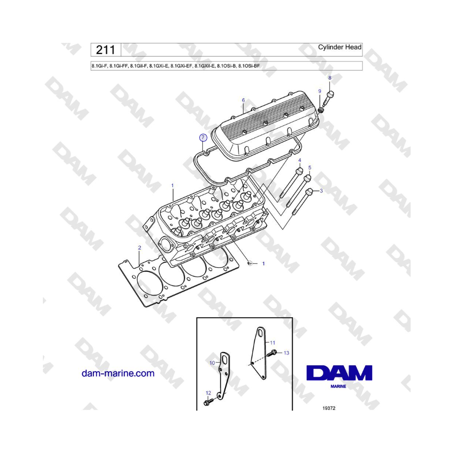 Culata de Volvo Penta 8.1Gi-G, 8.1Gi-GF, 8.1GXi-F, 8.1GXi-FF