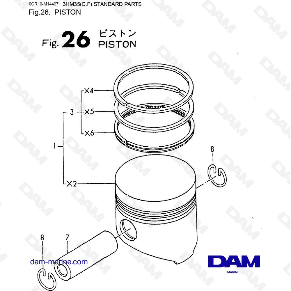 Piezas y vistas de despiece para motor Yanmar 3HM35
