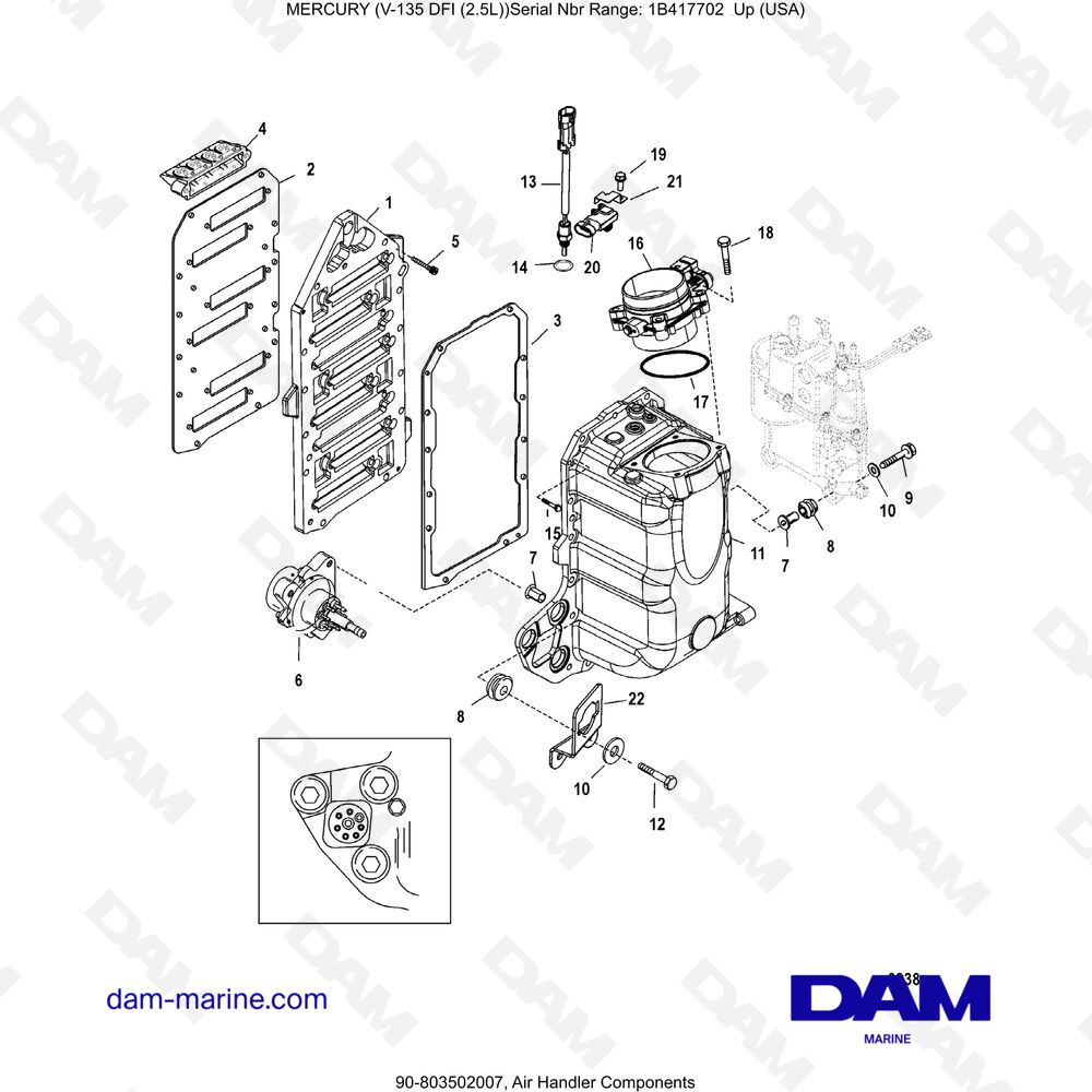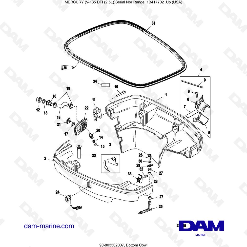 Encuentre todas las partes para su motor Mercury 135 DFI 2.5L, el sitio es nuevo, todas las partes aún no están referenciadas, si no puede encontrar la parte que está buscando, no dude en contactarnos directamente .