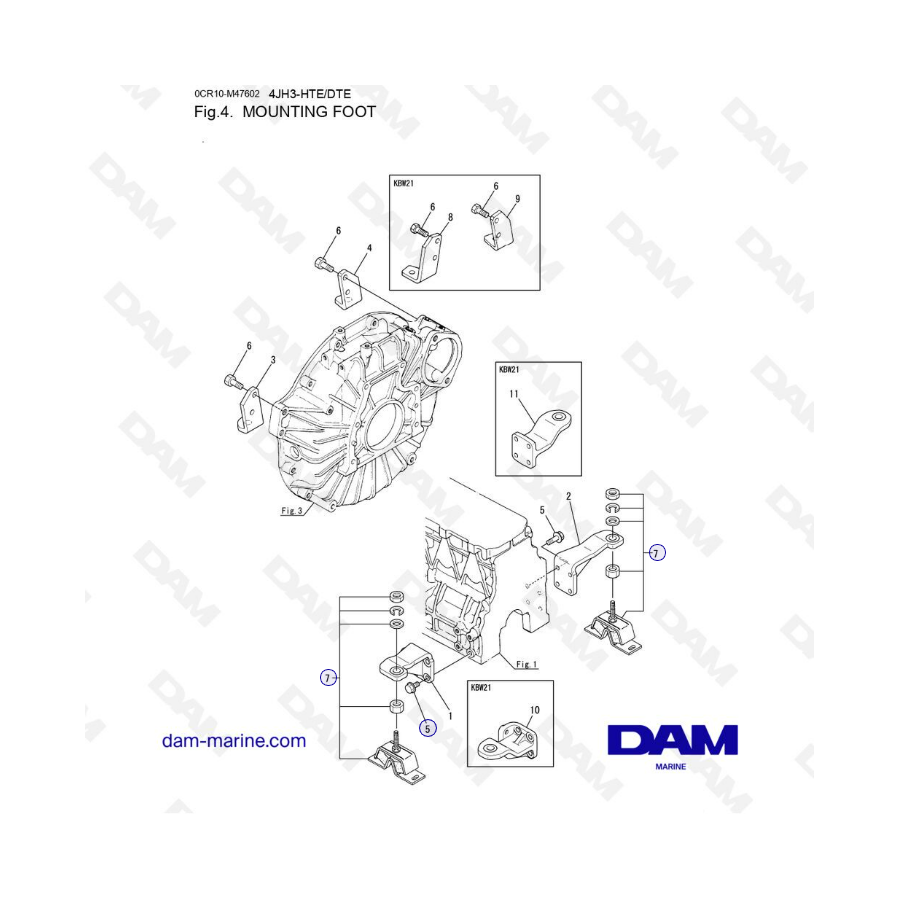 Support moteur pour Yanmar disposant des caractéristiques suivantes :