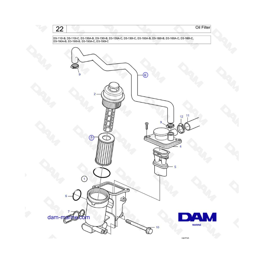 Filtre à huile papier pour moteur Volvo Penta GXI.