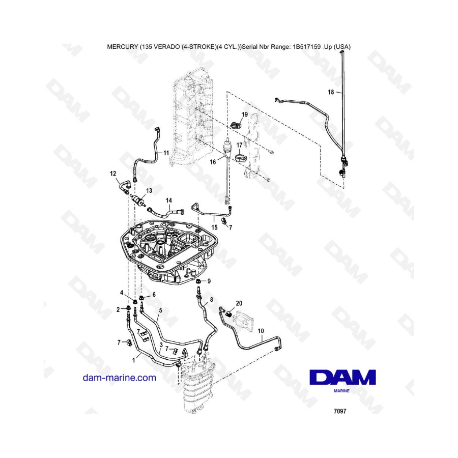 Mercury Verado 135 (SN 1B517159 y más): Enrutamiento de mangueras de placa adaptadora