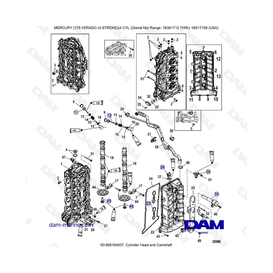 Culatas para motores marinos: Volvo, Mercury, Mercruiser, OMC, PCM