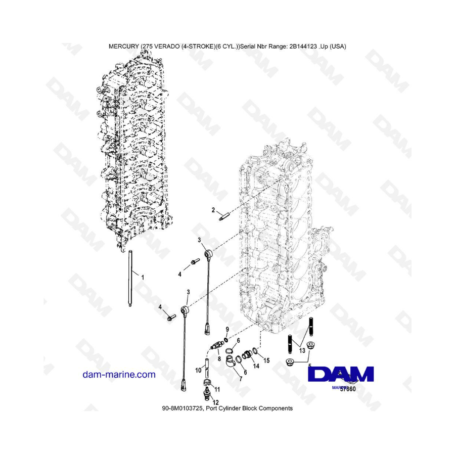 Mercury Verado 275 (SN2B144123 y +) - Componentes del bloque de cilindros de puerto