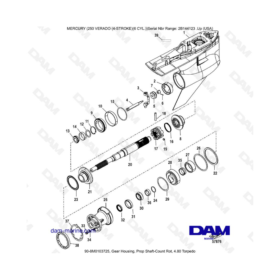 Mercury Verado 250 - Caja de engranajes, eje de la hélice - Conteo de rotura, Torpedo 4.80