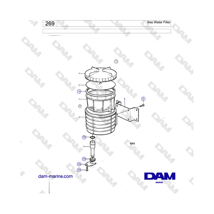 Filtro de agua de mar Volvo Penta KAD42B / KAMD42B / TAMD42B
