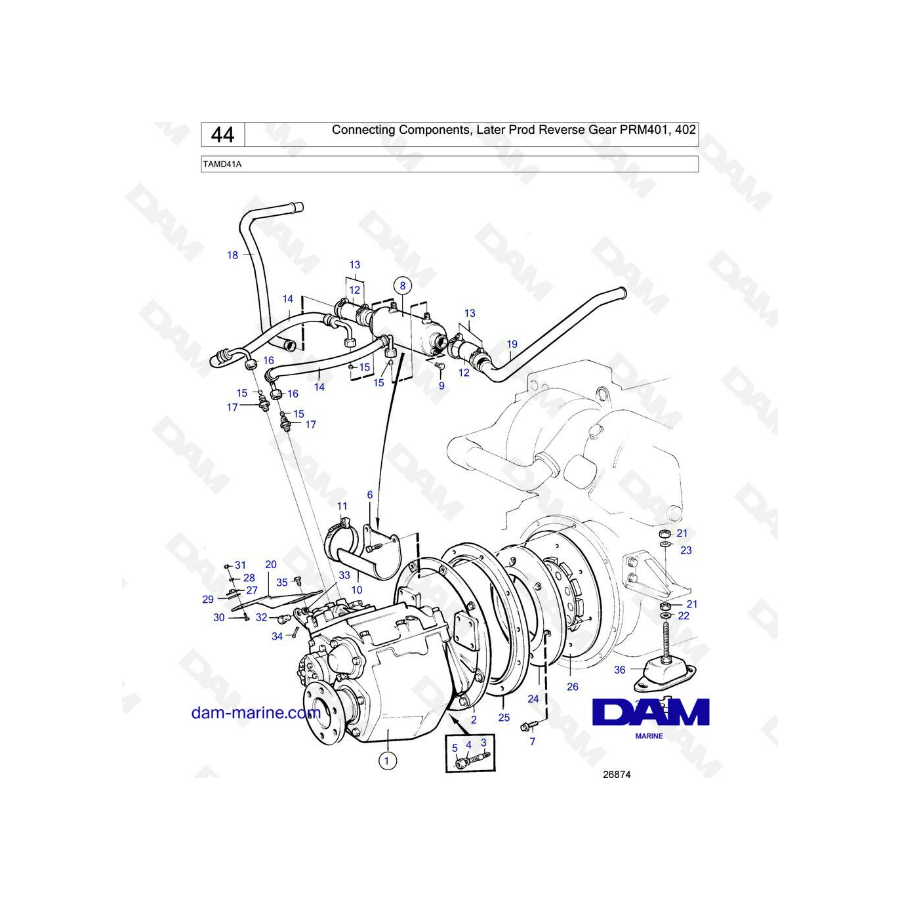 Volvo Penta TAMD41A - Connecting components, later prod reverse gear PRM401, 402