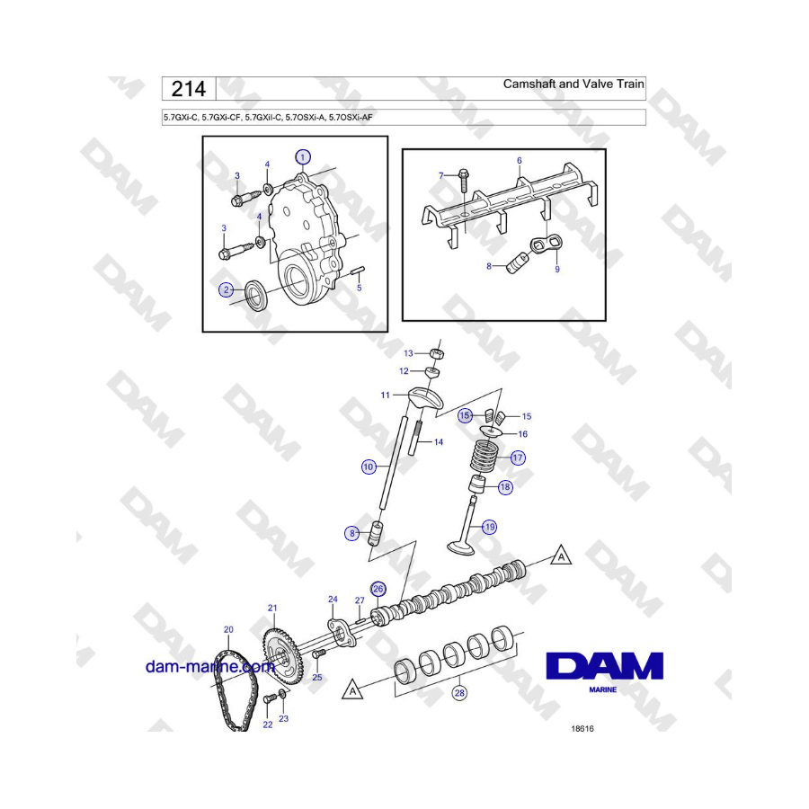 Volvo Penta 5.7GXi-C, 5.7GXi-CF, 5.7GXiI-C, 5.7OSXi-A, 5.7OSXi-AF - Camshaft and Valve Train