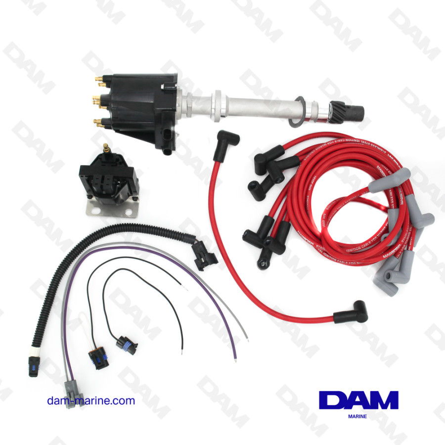 Kit d'allumage permettant le passage d'un allumeur de type conventionnel en allumage électronique HEI pour tous moteurs GM V8 de cylindrées 5, 5.7, 7.4, 8.2 Litres
