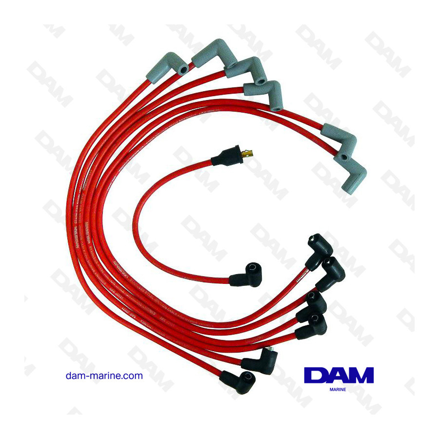 Jeu de fils de bougies complet incluant le fils de bobine pour moteur Mercruiser 4 cylindres 3.7 litres de types 470 - 488 etc ...
