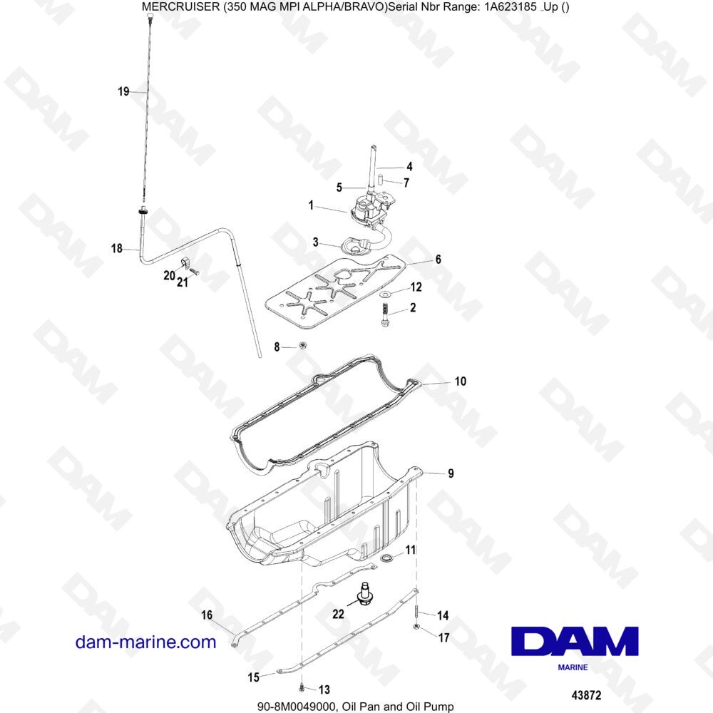 Vue éclatée : CARTER D'HUILE ET POMPE À HUILE pour moteur MERCRUISER 350 MAG MPI.