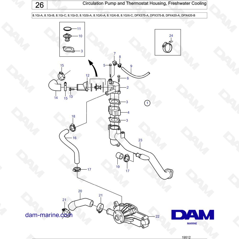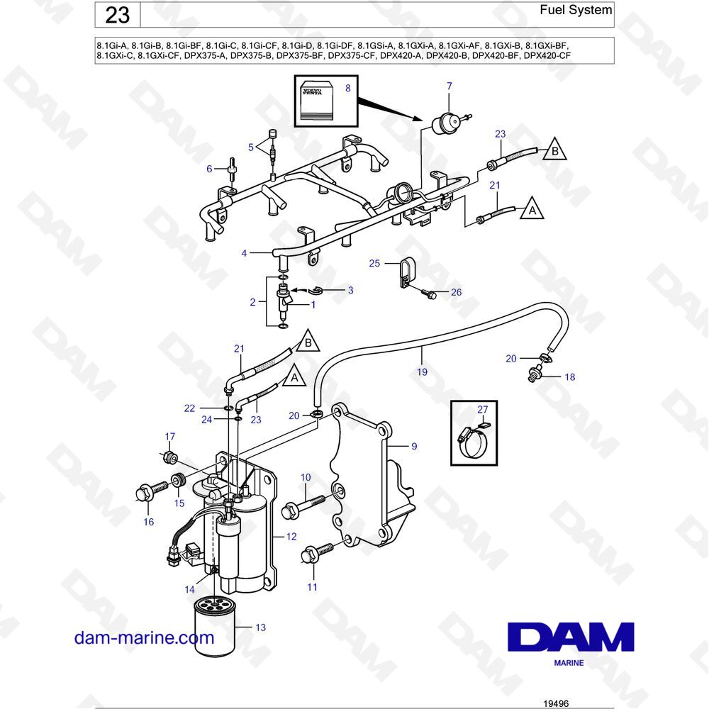 Vous recherchez les pièces compatibles avec votre moteur Volvo Penta 8.1L GI ? DAM Marine vous propose une sélection de pièces et de vues éclatées afin de vous aider pour votre choix.