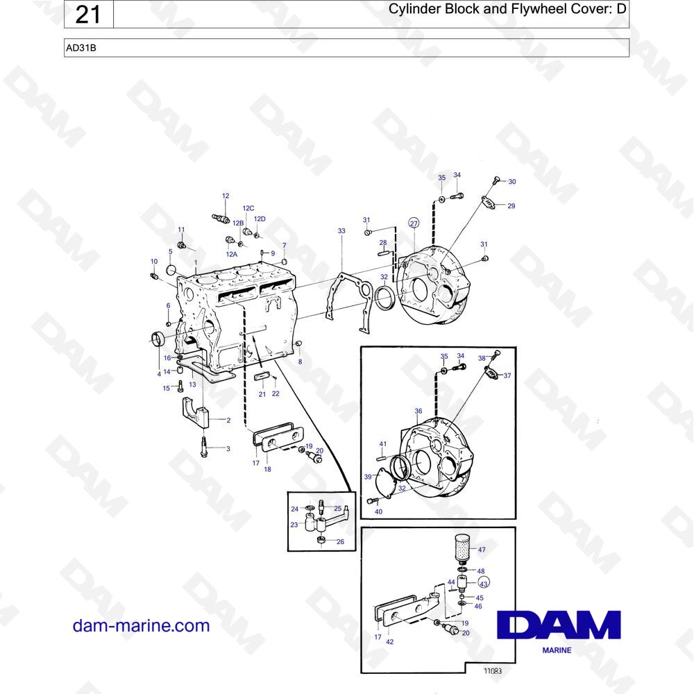 Pièces & Vues éclatées pour moteur Volvo Penta AD31B
