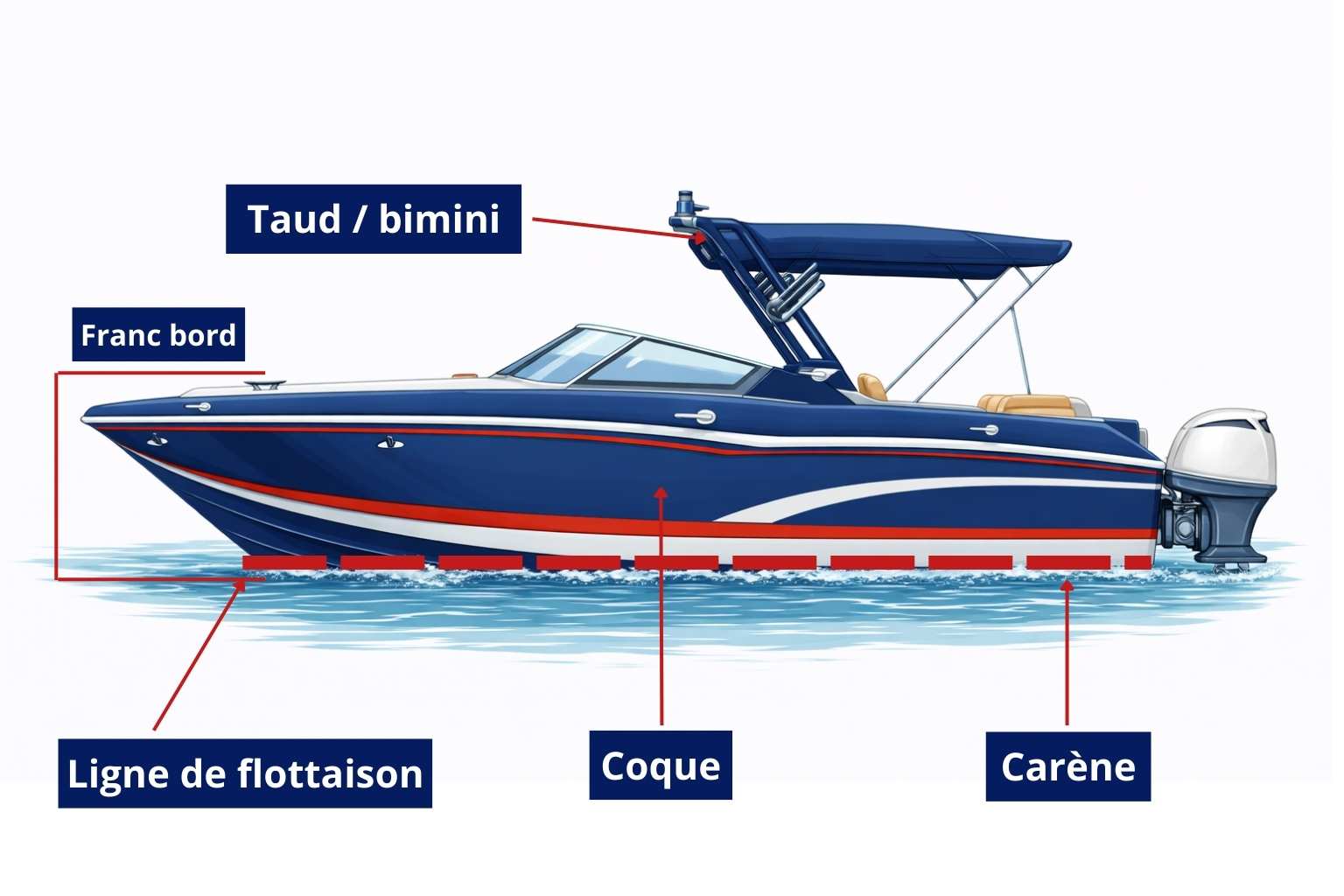 | Carène | Sous la ligne de flottaison | Stabilité, glisse, performance | Encrassement, antifouling, impacts |