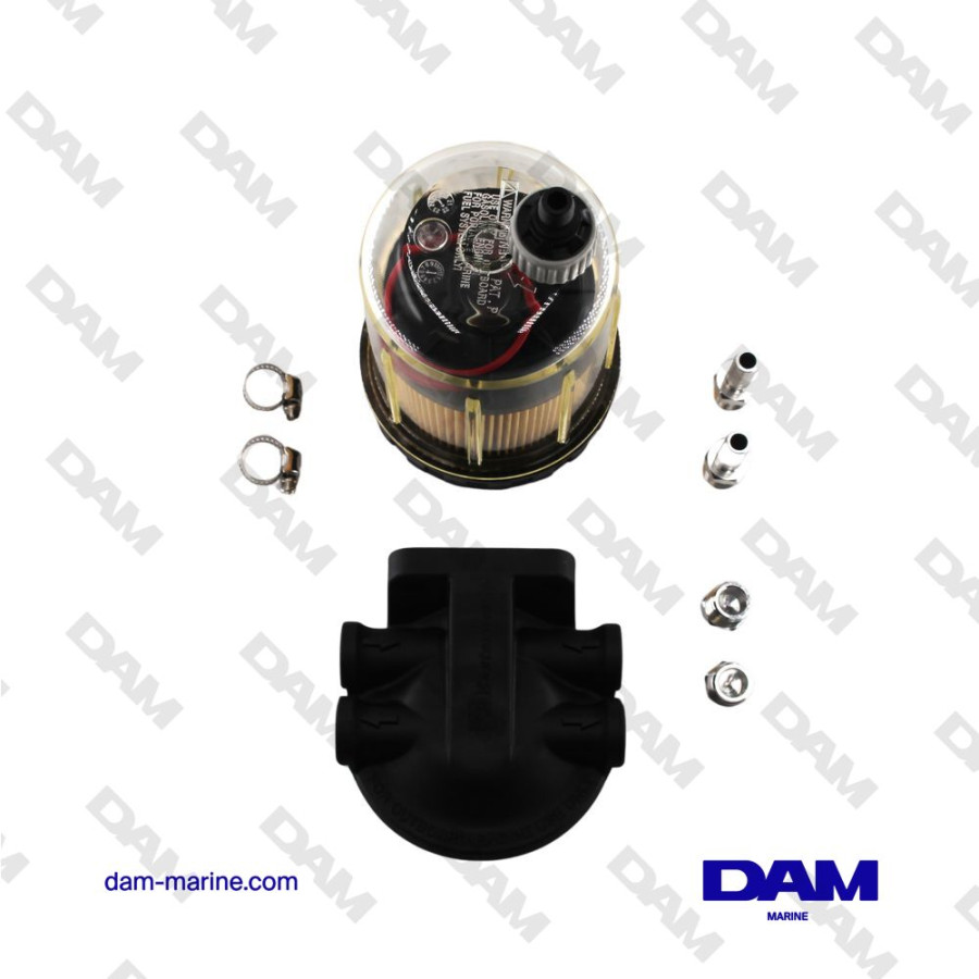 Préfiltre décanteur séparateur eau essence 205 litres / heures, corps et support plastique conseillé jusqu'à 150 cv.