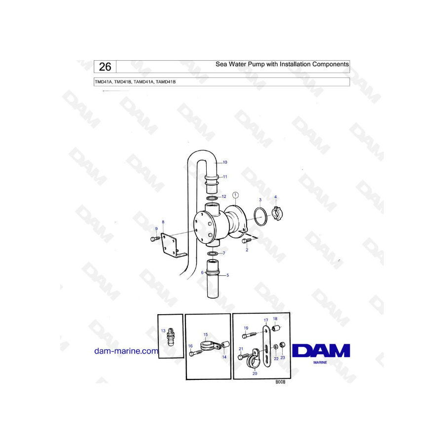 Volvo Penta TMD41A / TMD41B / TAMD41A / TAMD41B - Sea water pump with installation componentsd