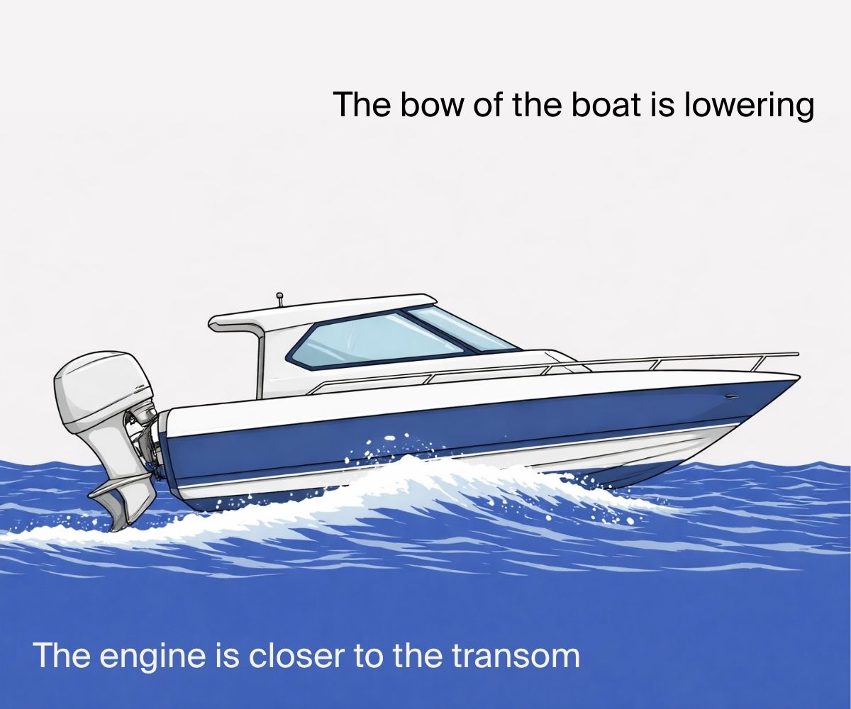 | Rough seas | More negative trim | Lower the bow and improve comfort | Keeping too much positive trim in waves |