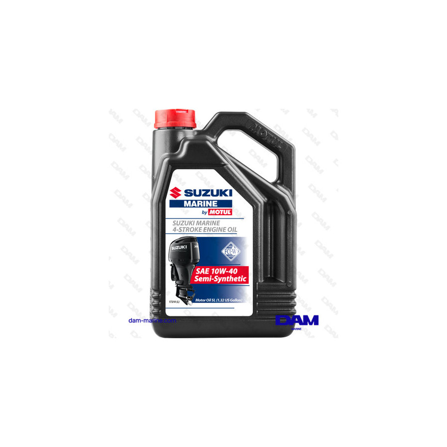 Lubrifiant Constructeur (OEM) semi-synthèse spécialement formulé pour les moteurs SUZUKI Essence 4T Hors Bord fonctionnant en conditions sévères, exigeants une huile homologué NMMA FC-W. La norme NMMA FC-W développée spécialement pour les lubrifiants destinés aux moteurs marins, sévérise les exigences lubrifiant par rapport aux huiles marines ordinaires sur les points suivants : viscosité HTHS à 150°C plus élevée permettant d'assurer une meilleure résistance du film d'huile à haute température et d'absorber la dilution dans les phases de ralentit prolongé, grade 40 à haute température pour conserver une meilleure protection en utilisation sévère et dans les climats tropicaux, meilleure résistance au cisaillement pour conserver les propriétés à haute température, propriétés anti-corrosion très élevées afin de lutter contre la corrosion provoquée par l'eau de mer ou le brouillard salin qui peut remonter jusque dans la chambre de combustion via l'échappement, meilleure protection anti-corrosion pendant les périodes d'hivernage, conservation des propriétés originales de l'huile en cas de contamination par l'eau de mer, meilleure résistance à l'oxydation, propriétés anti-mousse pour éviter le moussage et l'introduction de bulles d'air dans le circuit d'huile, propriétés anti-colmatage pour une meilleure protection des filtres à huile. Conditionnement bidon de 1 litre. Cette huile est de viscosité SAE 10W-40, appartient à la gamme Standard et bénéficie de la technologie Technosynthese®. Cette référence correspond à un conditionnement fabricant de 12 x 1 litre. Fabriqué en France.