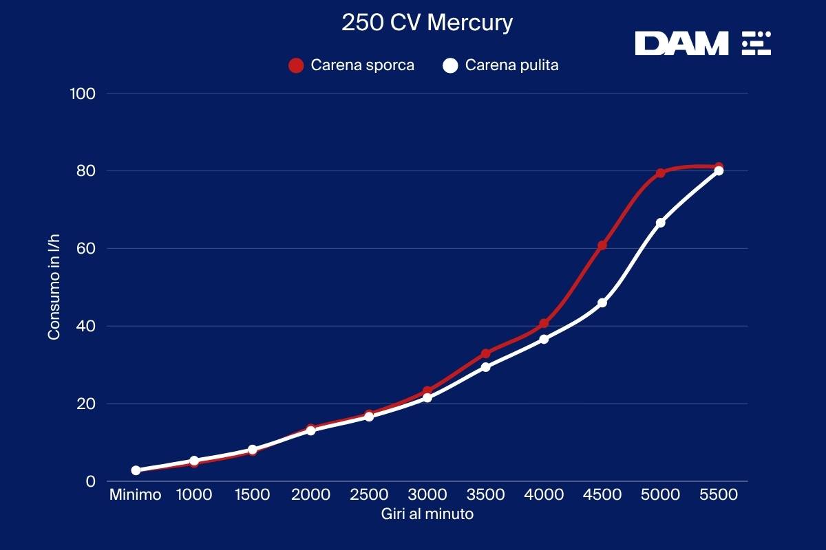 - Confronto del consumo di carburante con carena sporca / pulita